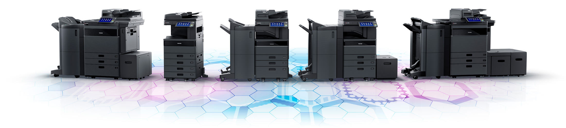 TOSHIBA's new MFP series uses the cloud to integrate cyber space and the work place so information and data can be stored, accessed, and used securely and efficiently, empowering customers and contributing to the creation of new value.