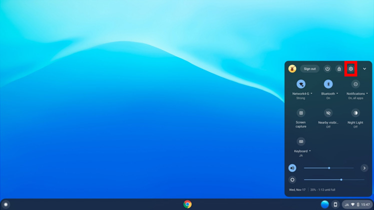 - (1) Click the time displayed at the lower right corner.