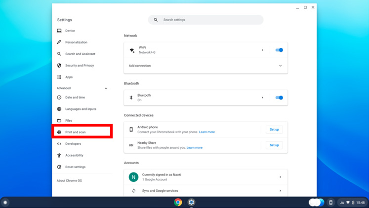 - (4) Select the "Print and scan".