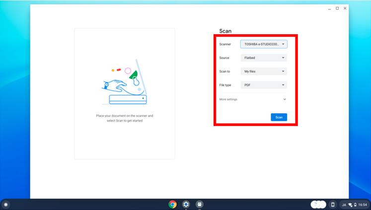 Network scanning from Chrome OS supporting Mopria eSCL.