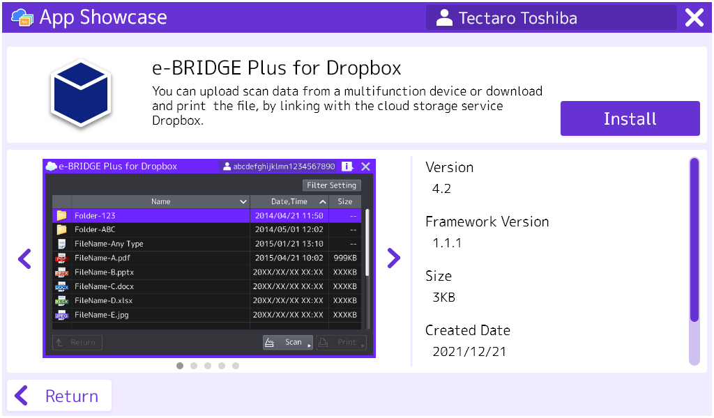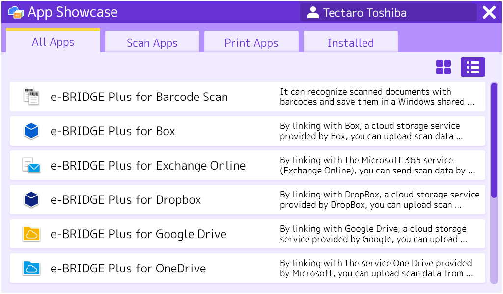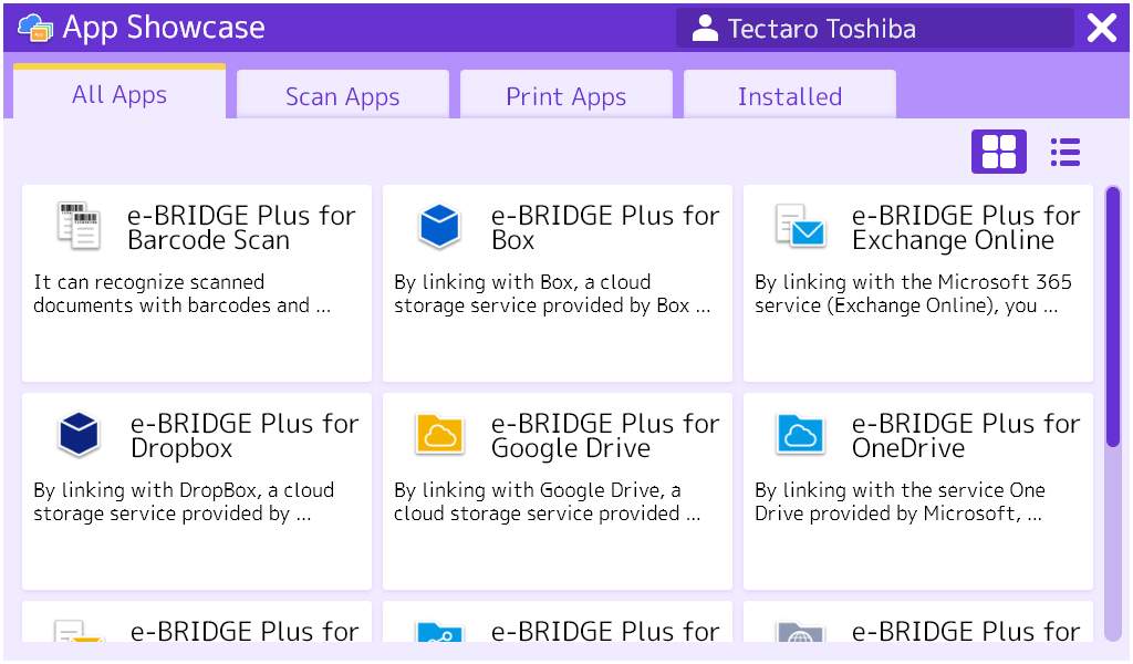 App Showcase lets you select and install various useful apps onto your MFP so you can save time, cost, and improve your workflow so you can focus onto your business. These apps can be installed securely through cloud services at any time.